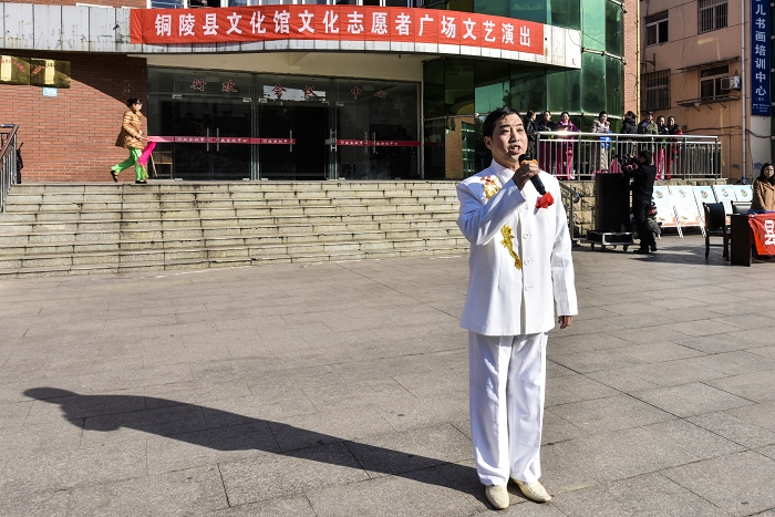 2015年12月4日,我馆组织文化志愿者在文化广场举办文艺演出。