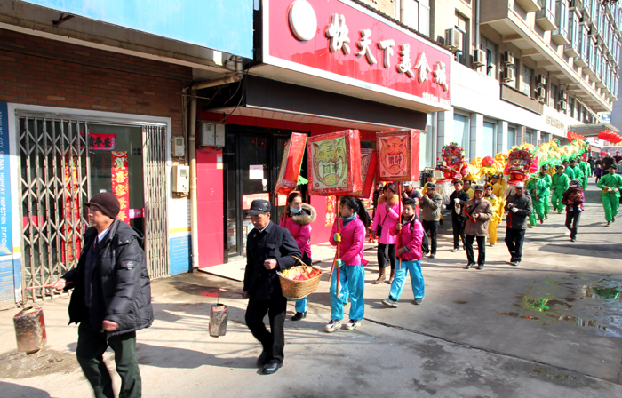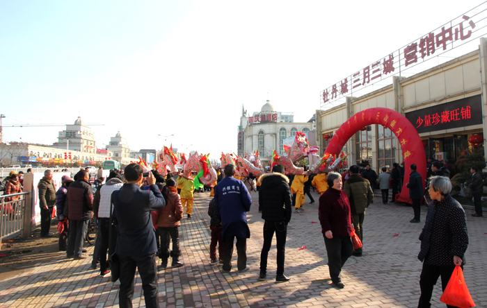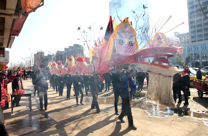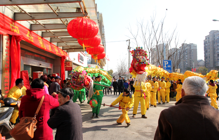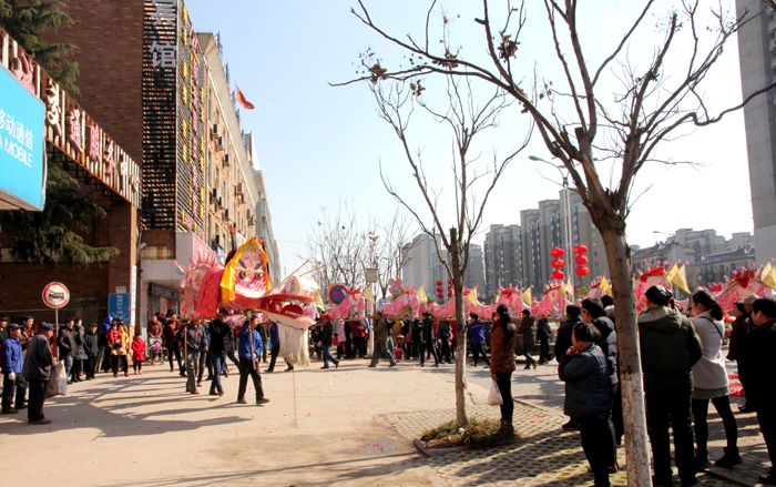 灵动婉转的滚龙、气势磅礴的板龙伴随着激扬的锣鼓声、哒哒的唢呐声、震耳的鞭炮声昂然而起,时而穿梭前行,时儿翔跃飞腾,栩栩如生,形态感人。精彩的舞龙表演吸引了众多市民驻足观看,共同感受过年的喜庆氛围。