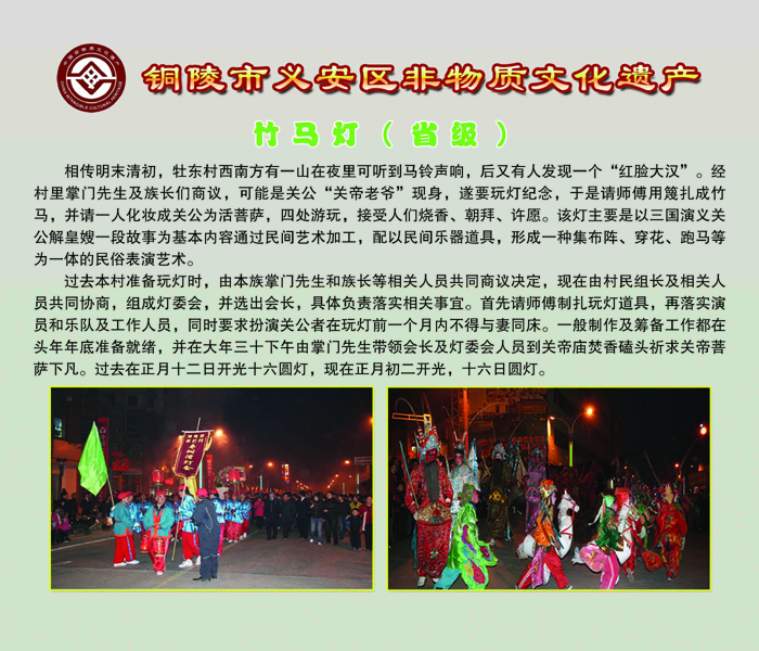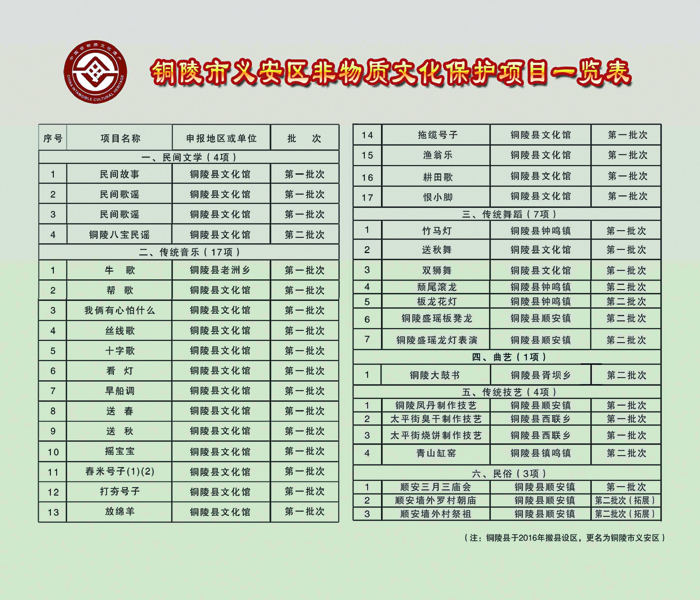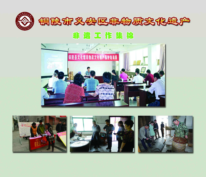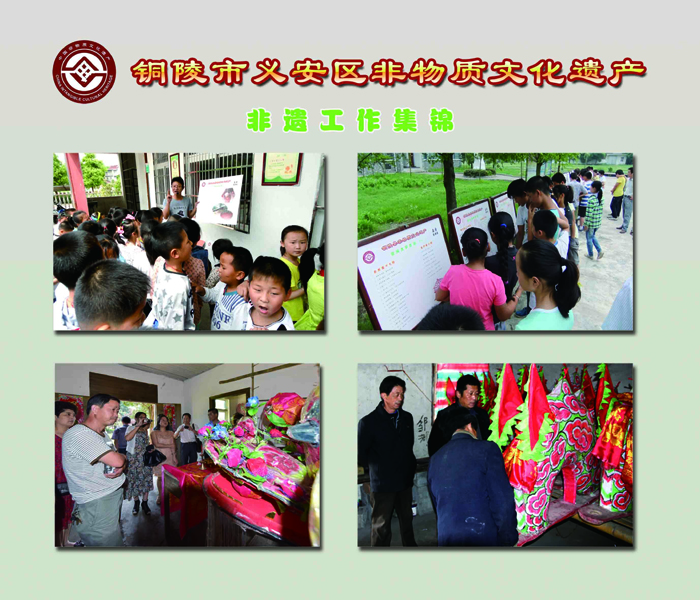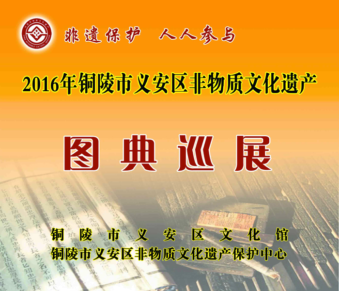 6月11日起,2016年铜陵市义安区非物质文化遗产图典巡展走进乡镇、社区、校园活动火热开启。本次非遗图典巡展共由26块展板组成,内容涉及我区的各项民俗活动、表演艺术、传统知识技能等。此次巡展旨在通过一行行文字、一张张图片,勾起了人们的乡愁,唤起人们保护非遗的意识,营造全社会共同参与保护非遗的良好氛围。