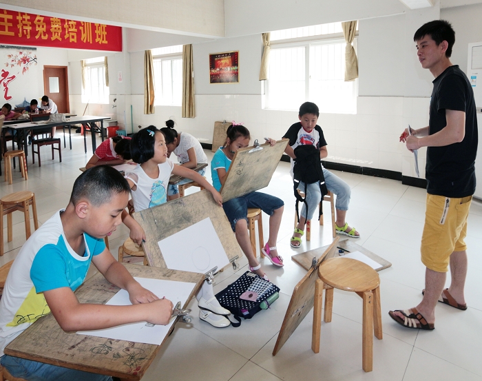 为丰富暑期学生的文化生活,培养中小学生艺术情操,我馆定于2014年暑期举办各类免费培训班,图为美术培训。
